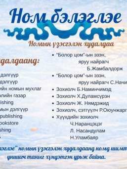 Харин “Анар”, “Чунт”, “Nepko”, “Geren” тэрүүтэй арван хэвлэлийн компани болон Номын дэлгүүр оролцох юм байна. Хүн төрөлхтний хөгжил асар хурдтай довтолгож байгаа өнөө цагт Цагаан сарын баяраар ард иргэд маань чанаргүй бараа нэгэндээ бэлэглэж байхаар Монгол Улсын болон гадаадын нэр алдартай зохиолчдын ном бэлэглэх нь юу юунаас чухал биз ээ.