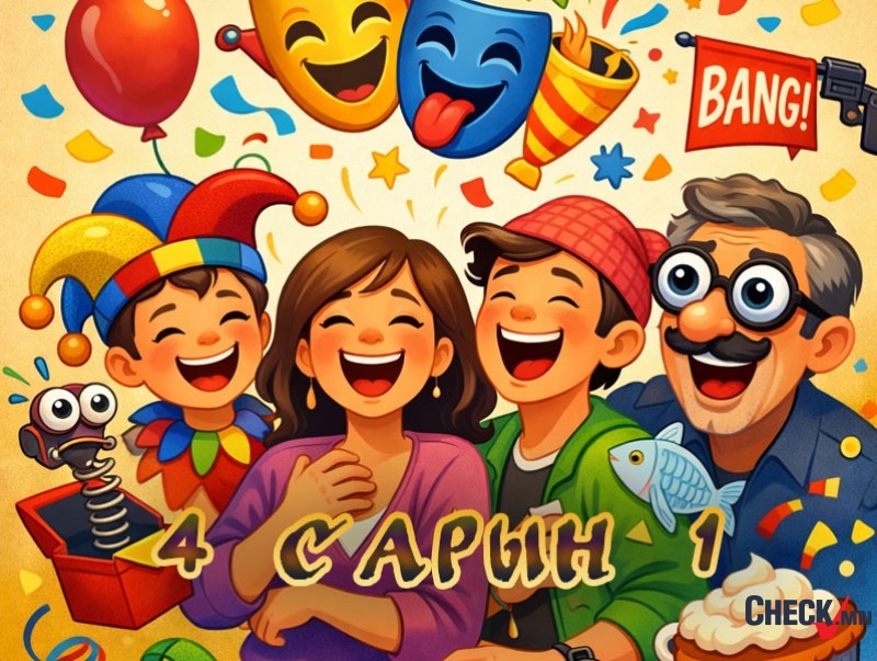 Өнөөдөр дөрөвдүгээр сарын 1. Дэлхийн олон улс оронд инээд, хошигнол, тоглоомоор баясдаг Инээдмийн өдрийг тэмдэглэн өнгөрүүлж байна. Энэ өдөр хүмүүс бие биедээ гэмгүй хошигнол хийж, баяр баясгалан түгээхийг зорьдог уламжлалтай. Инээдмийн өдрийн үүсэл гарал тодорхой бус боловч Европын орнуудаас эхтэй гэж үздэг. Зарим судлаачдын тайлбарласнаар Франц улсад шинэ жилийг дөрөвдүгээр сарын эхээр тэмдэглэдэг уламжлал байсан бөгөөд хожим шинэ жилийг нэгдүгээр сарын 1-нд тэмдэглэх шийдвэр гарснаар хуучин заншлаа баримталсан хүмүүсийг тоглоомоор хуурч, хошигнодог болсон нь Инээдмийн өдрийн эхлэл болсон гэж үздэг.